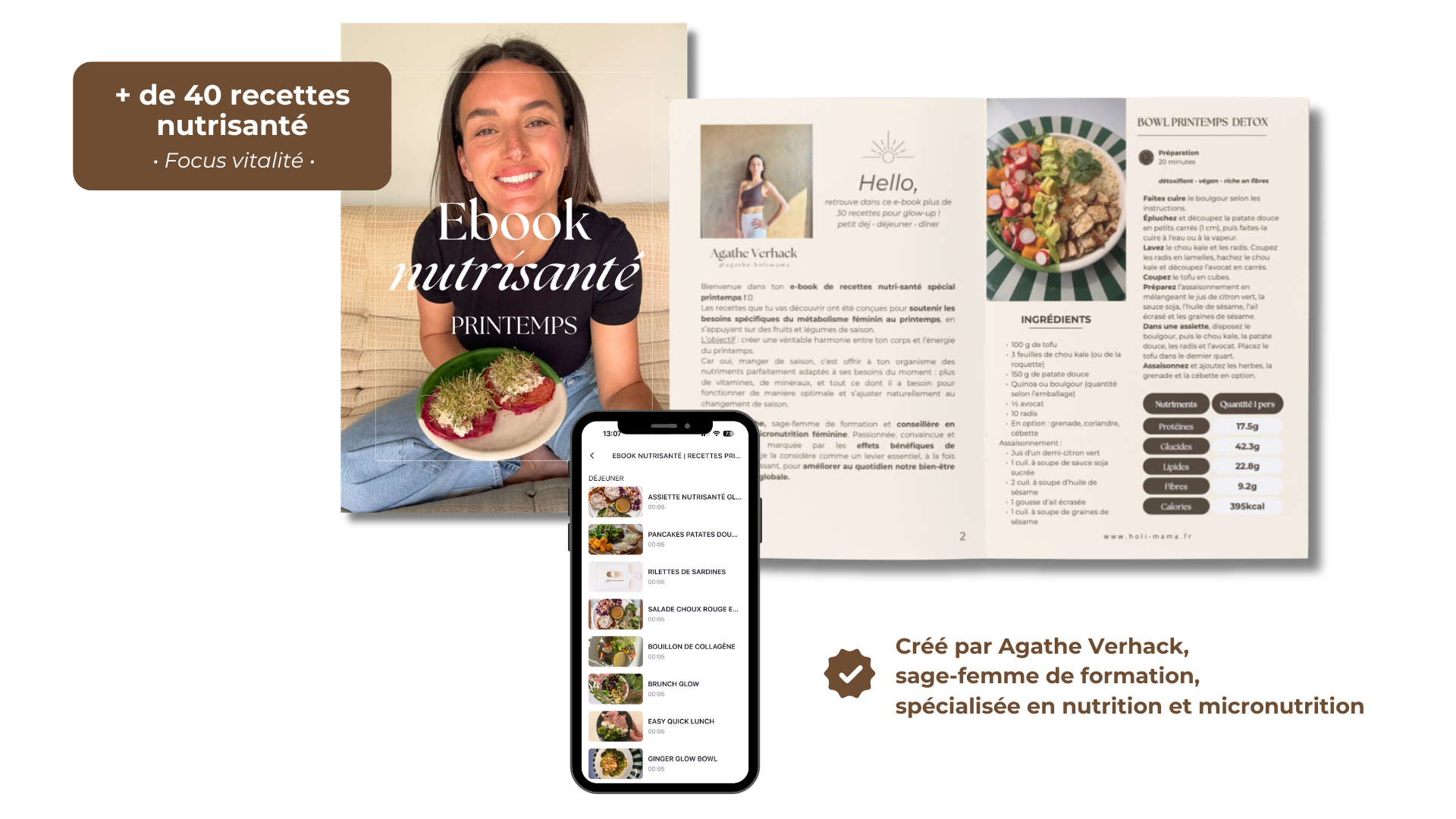 Retrouve plus de 40 recettes nutrisanté conçues par Agathe et pensées pour répondre aux besoins spécifiques de ton métabolisme féminin au printemps.